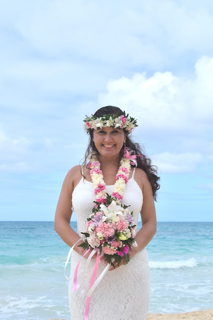 Não estava nada nervosa nesse primeiro momento, acho que a ficha ainda não tinha caído, estava curtindo a Ilha, as praias e a vibe do lugar! Bom, isso até o dia 20 de Maio, quando a Elaine me manda um whats app: “Larissa, vou deixar seu buquê e suas flores no Hotel!”. Acho que a partir daí comecei a pensar: “Ops, peraí, eu vou casar!!!” E acho que o mais legal de casar no Havaí foi isso, não ter aquela pressão, aquele nervosismo de ter tudo certinho e perfeito no dia, simplesmente deixei tudo nas mãos da equipe do Hawaii Eco Weddings, relaxei e foi tudo perfeitamente resolvido por e-mail e whats app!! No dia anterior, no Island Tour, estávamos tomando banho de mar, comendo coxinha com açaí e rindo à toa! Claro que ansiedade existiu, afinal, ia celebrar um momento tão especial longe de pessoas especiais nas nossas vidas, não tive minha mãe ao lado me ajudando com o vestido, nem as madrinhas me acalmando, mas sentimos a energia que estavam mandando do Brasil para nós!