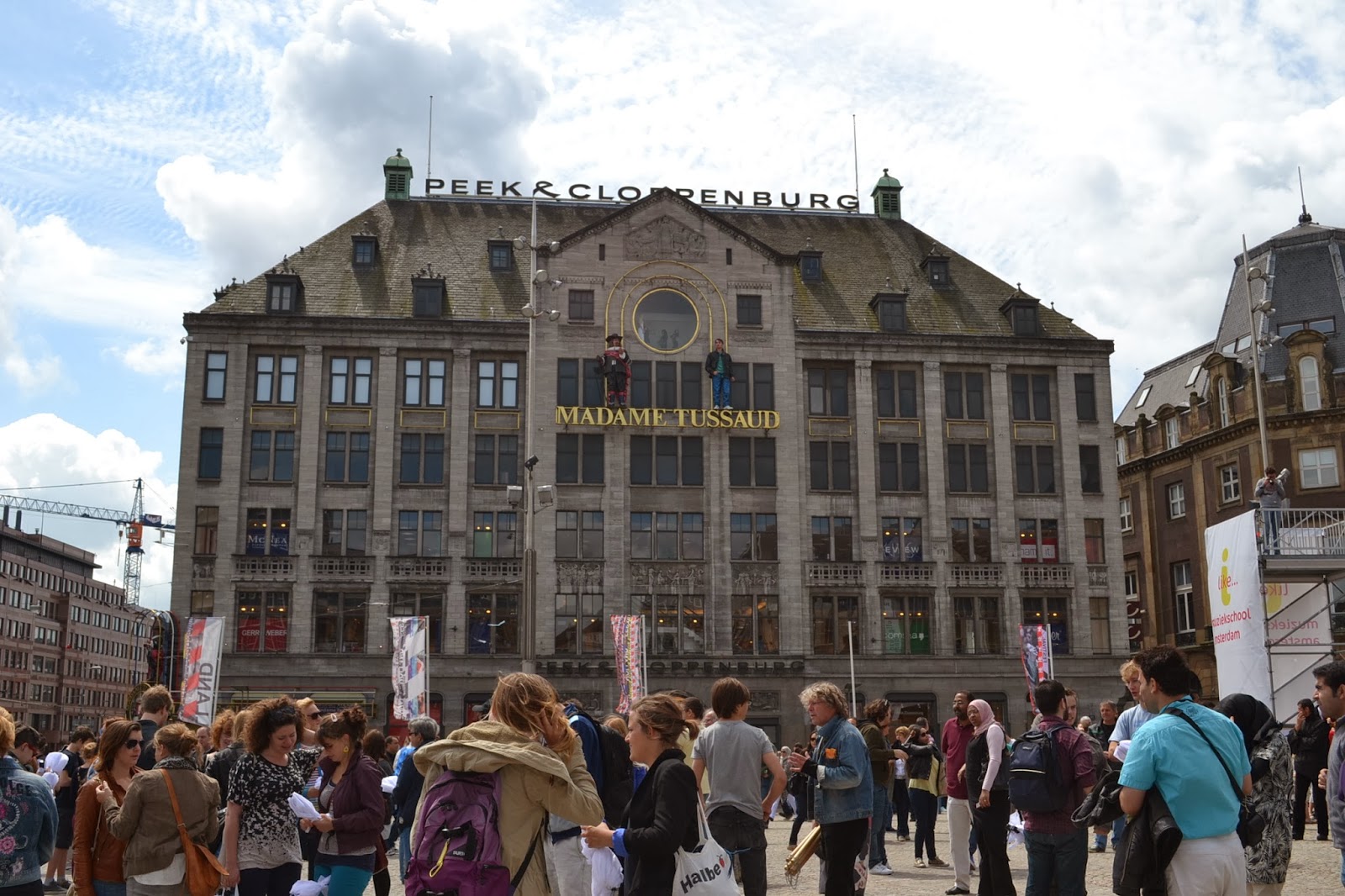 Praça DAM– Tá, é super, hiper, mega turístico, mas a Dam Square é a praça central de Amsterdam, o coração da cidade,e hoje em dia tem uma grande concentração de pombos e artistas de rua, então, tem que ir! Ao redor da praça encontramos vários hotéis, restaurantes, lojas e museus. É aqui que está o museu de cera Madame Tussauds, o de Bijenkorf, a maior loja de departamentos de Amsterdam, super chic, com grifes famosas, e minha dica: o Dam Plaza, restaurante maravilhoso que postei até no instagram esses dias, com massas deliciosas, chopp e um salmão, humm,imperdível!! Estava com tanta saudades de comer arroz, e só ai matei meu desejo!!