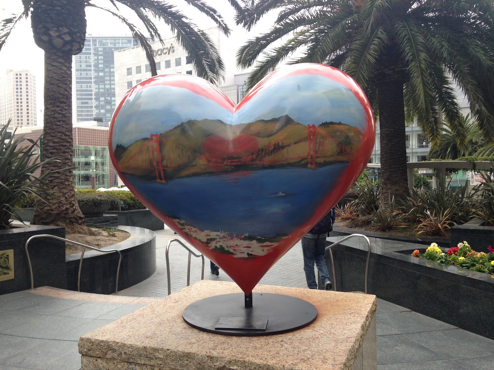 Na Union Square também encontramos vários corações como obras de arte, eles fazem parte de um projeto dede 2004, onde são pintados e os antigos leiloados, o dinheiro é revertido para o Hospital Geral de São Francisco, então, sempre que vir um coração desses, lembre-se da boa ação por trás dele!