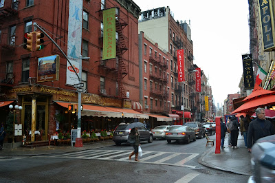 7º DIA- Saímos em direção ao Chinatown, Little Italy e Soho. Confesso que foi muito difícil chegar em Chinatown, rs, tivemos que fazer várias conexões no metrô, mas, enfim chegamos!!!! É bem interessante, pois tudo, tudo lá é em chinês, vc se sente mesmo na China, o nome dos bancos, dos restaurantes, os cardápios, além de que, tem muito produto assim, digamos, “réplicas”! Muitas mulheres passaram por mim oferecendo bolsas, relógios, carteiras….claro que não aceitei, ou corria o risco de ser levada para o esconderijo secreto deles, rs, preferi não arriscar!!! Assim, é interessante, mas dá pra dispensar esse passeio, a não ser que você goste da cultura chinesa, e tenha curiosidade, porque é uma outra NY, de pessoas mais simples, com aquelas comidas diferentes vendidas nas ruas, produtos chineses, e muitas lojas de compra e venda de ouro!!! De lá seguimos para o Little Italy, e como estava chovendo, decidimos almoçar por lá, tem vários restaurantes italianos, você literalmente sai da China para a Itália rapidinho, e parece estar entrando no cenário do “O Poderoso Chefão”!!!! Para almoçar, entre tantas opções, escolhemos o Café di Napoli, muito bom por sinal, eu amei esse bairro por me sentir mesmo na Itália, com pessoas falando italiano na rua e claro, pela gastronomia italiana, que eu amo!!!! De lá seguimos para o Soho, nossa, me encantei!! O Soho é aquele bairro descolado, com lojas sofisticadas, arquitetura linda, alternativo mas chic e com várias lojas de grife!! Um encanto!!!