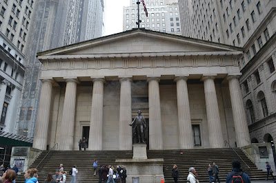 3º DIA- Saímos para conhecer o Financial District em Lower Manhattan. pegamos o metrô e descemos na estação próxima ao World Trade Center, como estava chovendo, entramos na loja que vende ingressos para o Memorial do 11.09, mas, não compramos, entramos numa igrejinha que fica bem em frente, onde tinham várias homenagens aos mortos no 11.09, clima não era muito bom, uma tristeza no ar, então, decidimos não visitar os escombros do WTC, mas caso você queira compre o ticket na loja e siga em direção ao memorial….mas, vimos o novo WTC que já está quase concluído e será o prédio mais alto de NY! Pra ter ideia da altura, nesse dia estava bem nublado e algumas nuvens encobriam o topo do prédio!! Seguimos em direção ao Battery Park, um parque lindo nas margens do Hudson River, com vista para a Estátua da Liberdade, de lá fomos até o Financial District, onde tem o famoso Charging Bull, o touro de bronze, diz a lenda que se você esfregar suas mãos, bem, nas “bolas” do touro, terá sorte $$$, custa nada tentar né?! No Financial District está a Bolsa de Valores de NY, na Wall Street, talvez a mais famosa bolsa do mundo!! Depois seguimos para o Pier 17, um ponto não muito procurado por turistas, com vários barcos, e restaurantes, perfeito para um happy hour, recebi esta dica e inclui no nosso roteiro, mas, para nossa decepção estava fechado para manutenção, então, apenas ficamos admirando a Brooklyn Bridge. Daqui, dá pra ir para a Estátua da Liberdade, mas como estava muito nublado, esperamos um dia de sol para fazer este passeio. À noite, saímos para ver a Times Square funcionando com seus letreiros!! Tudo muito grandioso e muita, mas muita luz!!!! Essa rua não para, a toda hora tem gente no meio da rua e movimento!!!